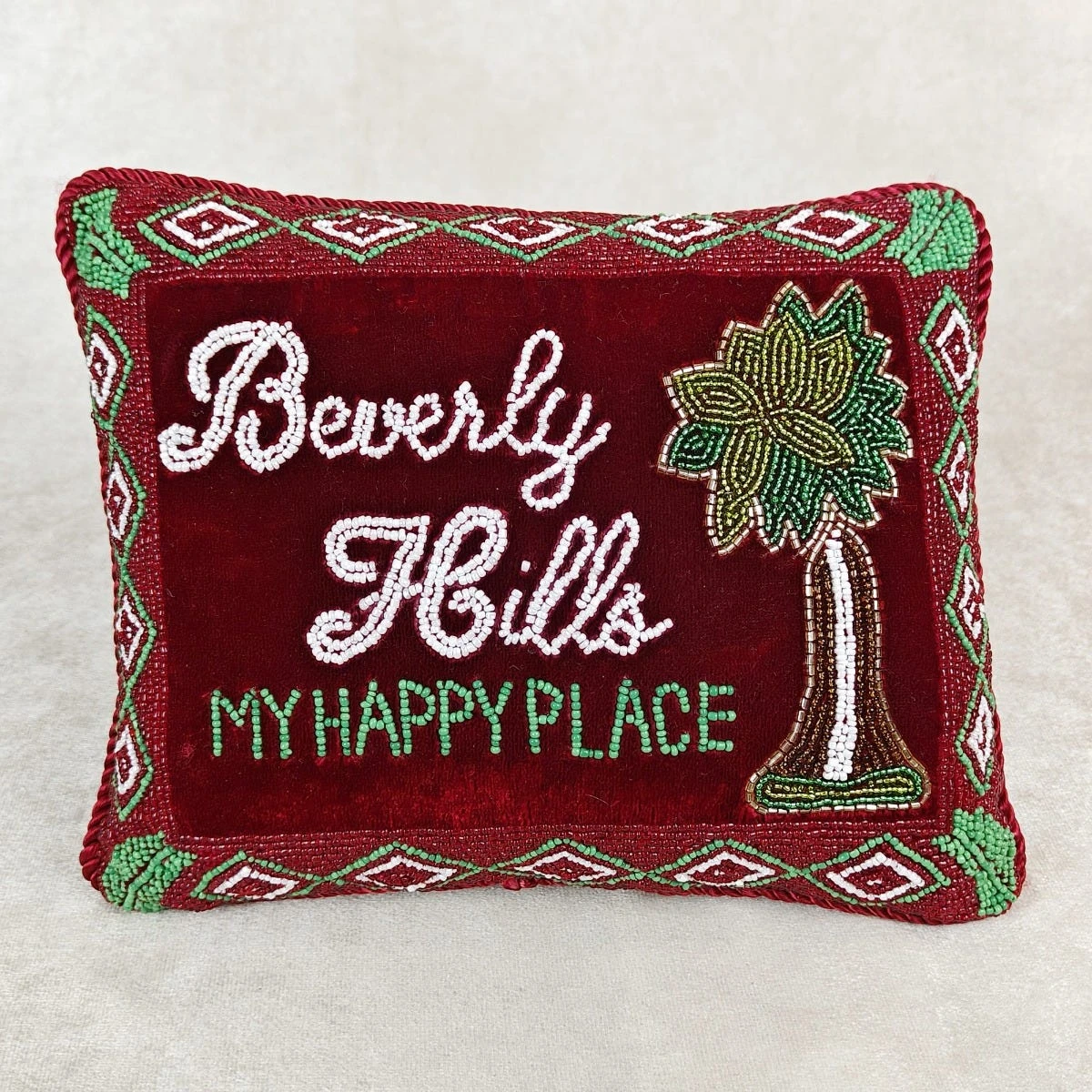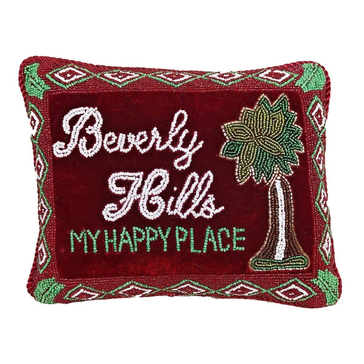 Celebrate the Christmas season with this Beverly Hills My Happy Place Pillow by Sudha Pennathur – a beautifully festive addition to your collection of holiday decorations this season!