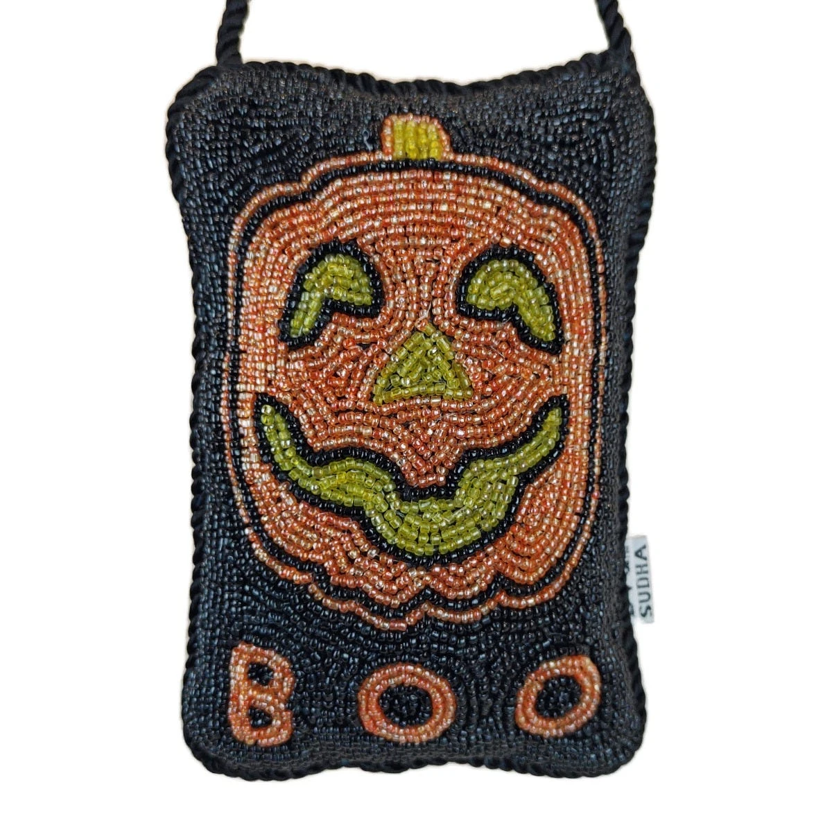 Celebrate Halloween “Boo” Jack O’Lantern Halloween Beaded Doorknocker by Sudha Pennathur – a beautifully festive addition to your collection of holiday decorations this season!