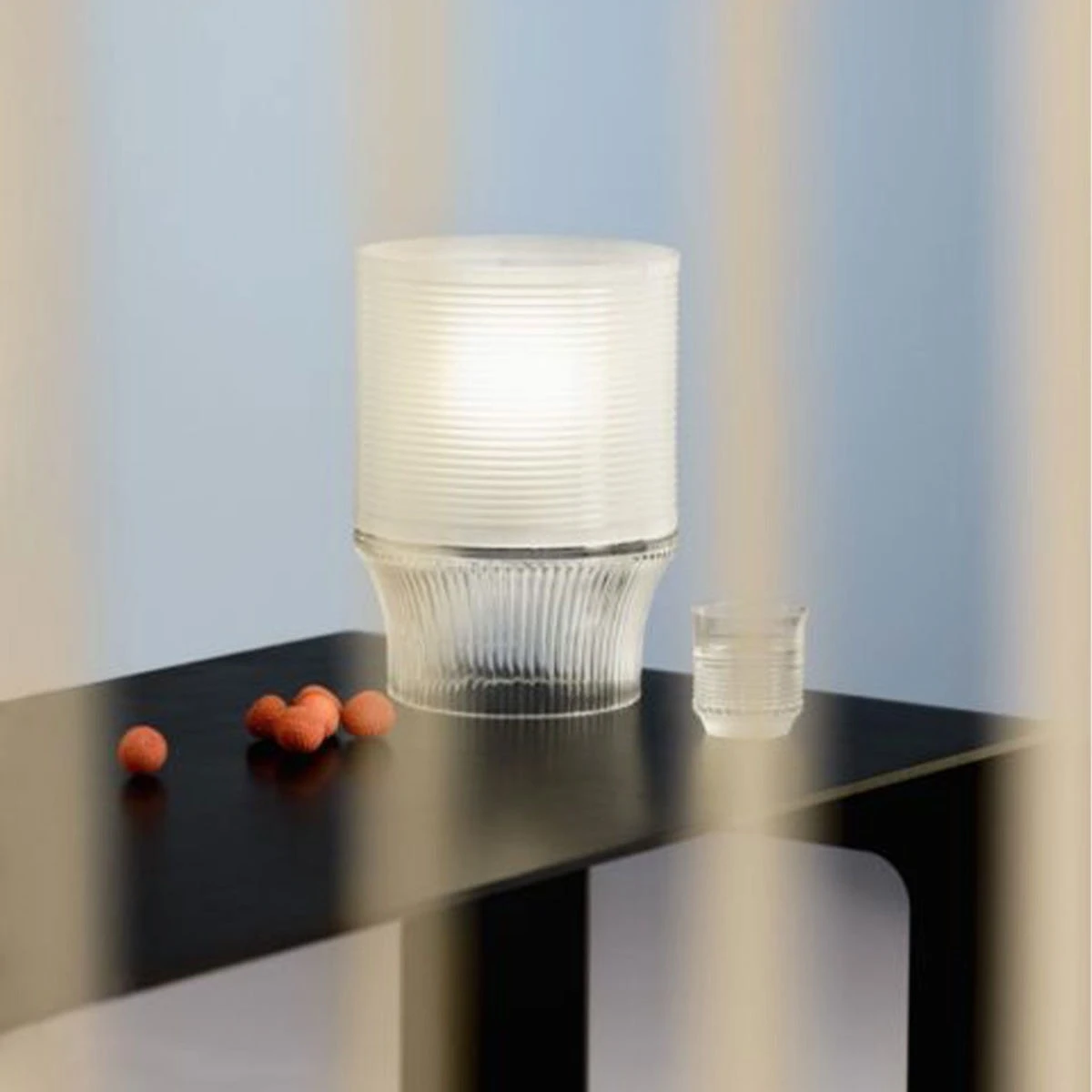 For some, the combination of a cut clear crystal base and a sandblasted lampshade for radiant and dynamic lighting. For others, the combination of clear crystal and a matte paper lampshade marked with lines, for a more subdued brightness.
