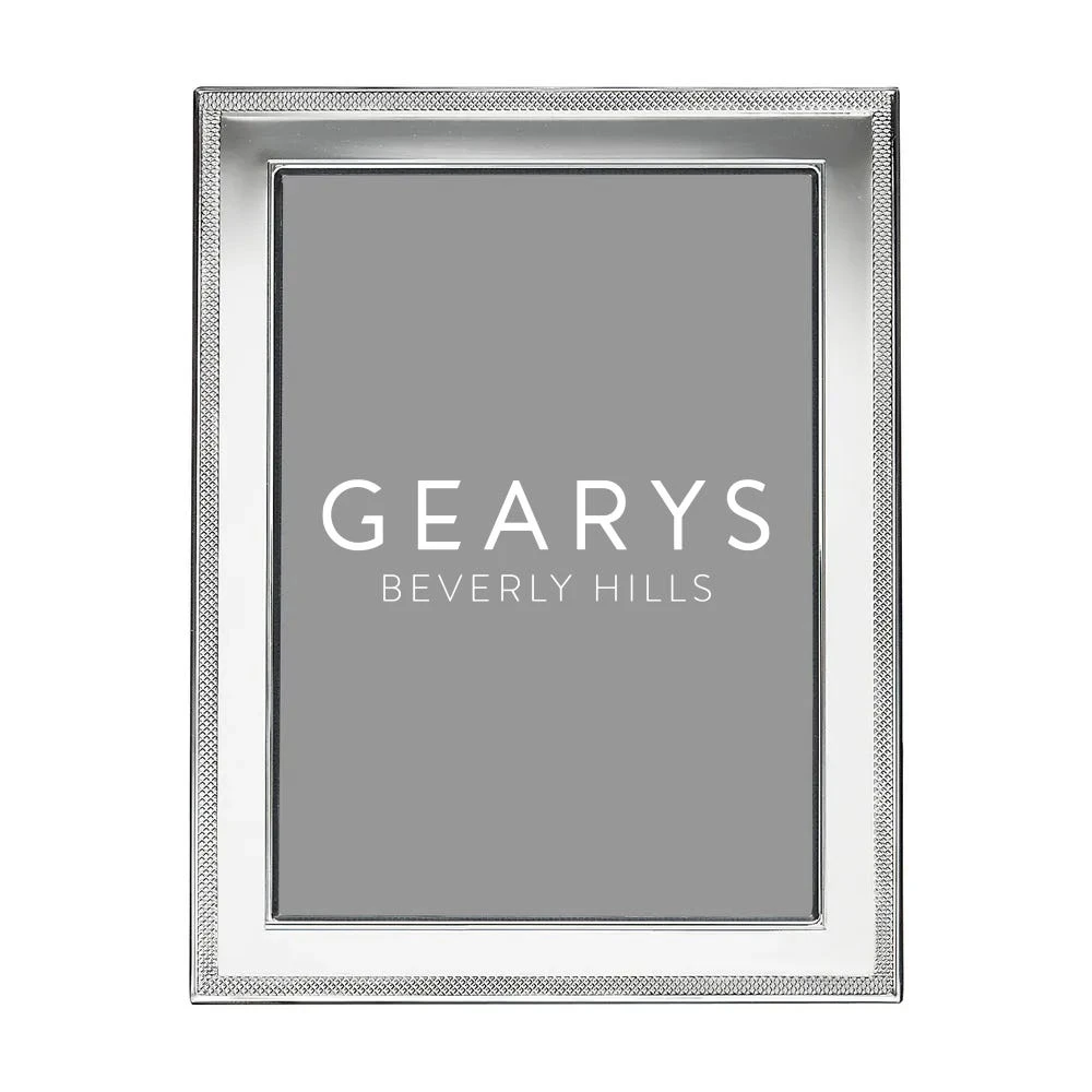 Traditional elegance in sterling silver, the Cross Hatch Border frame from Tizo features an impressive narrow border of cross hatching on the outer edge. A dramatic choice and the perfect fit for any decor, this frame is finished with a wood back.