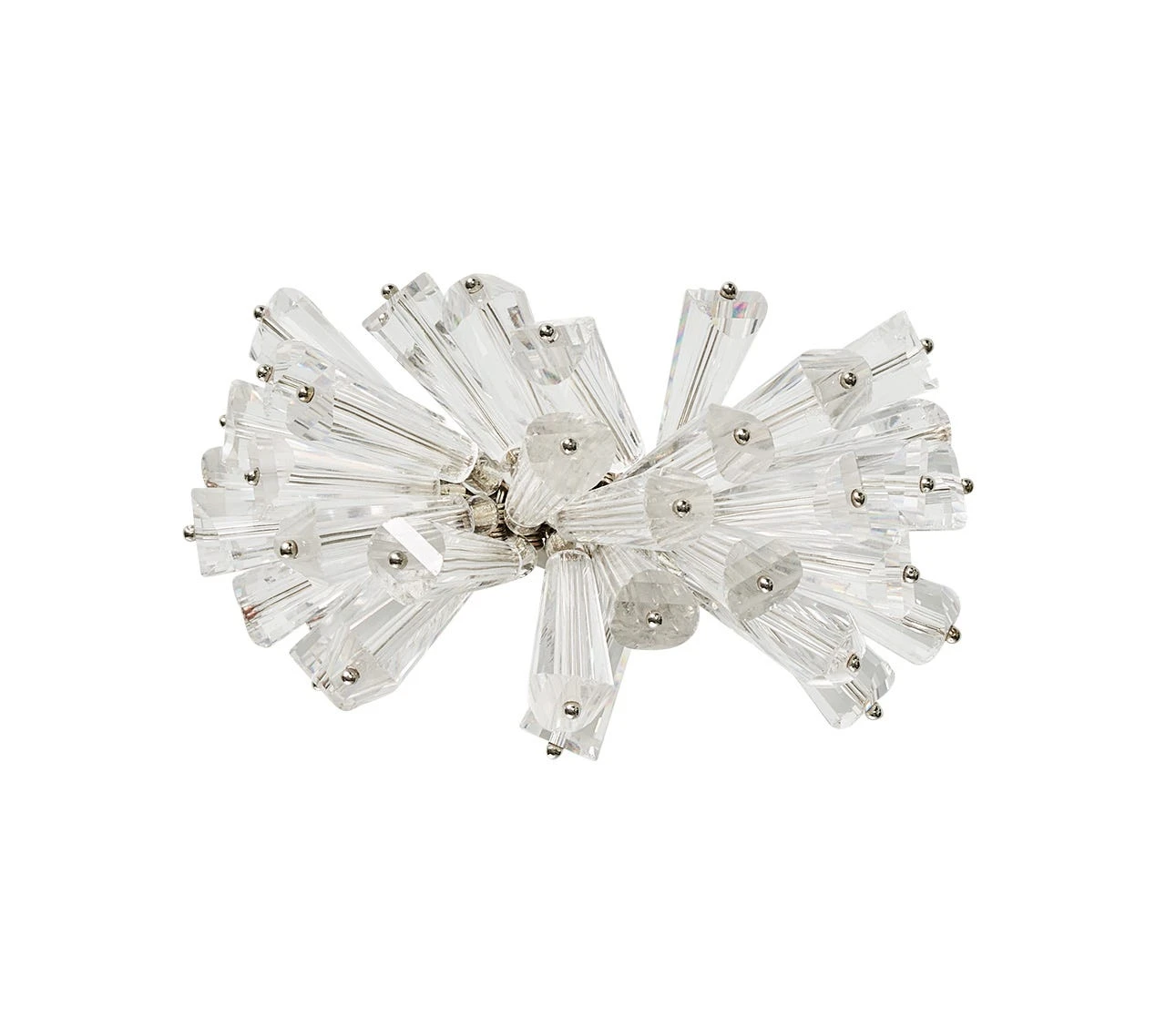 The lavish crystal Dazzle Napkin Ring from Kim Seybert does just that. Flawless, faceted glass beads are hand-arranged in a curved fringe and sit atop a beaded ring. The intricate details and exquisite artistry of the cut glass beads beautifully reflect light to a dazzling sense of movement.