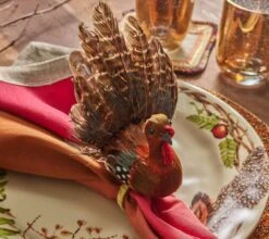 More than 20 different beads and sequins in vibrant autumnal shades create the detailed leaves of the rust colored Fall Frolic Placemat from Kim Seybert. A hand-beaded, wreath-like border frames a gold center. Intricate hand-beading techniques produce life-like leaves with depth and texture. Ideal for harvest themes and Thanksgiving gatherings.