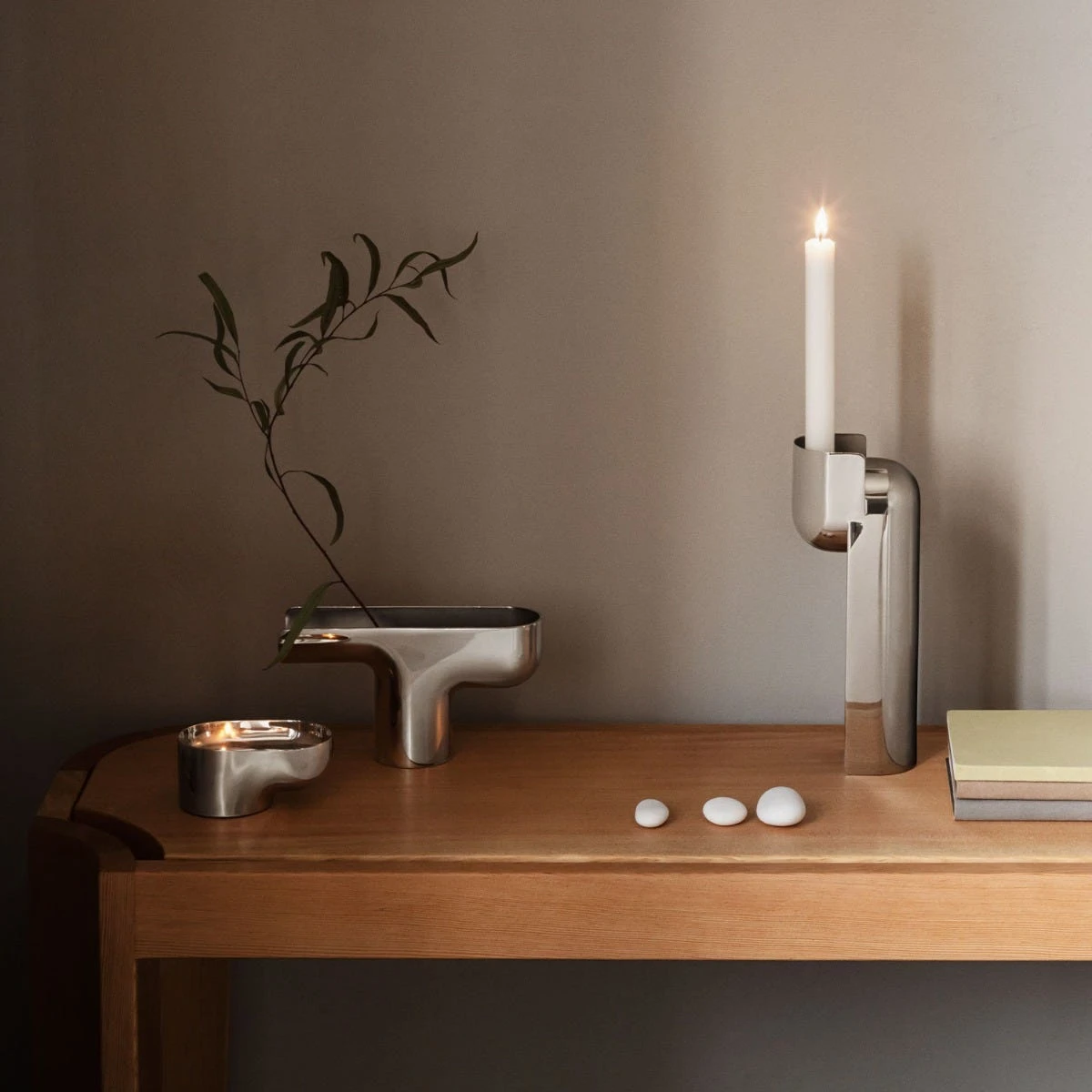 Retaining the sculptural and organic forms of the collection, Georg Jensen’s tall edition of the Nendo candleholder is designed by award-winning Japanese architect and designer Oki Sato. A perfect meeting point between Japanese minimalism and the simplicity of Danish design, this polished stainless steel candleholder looks stunning on its own and when matched with other designs from the collection.