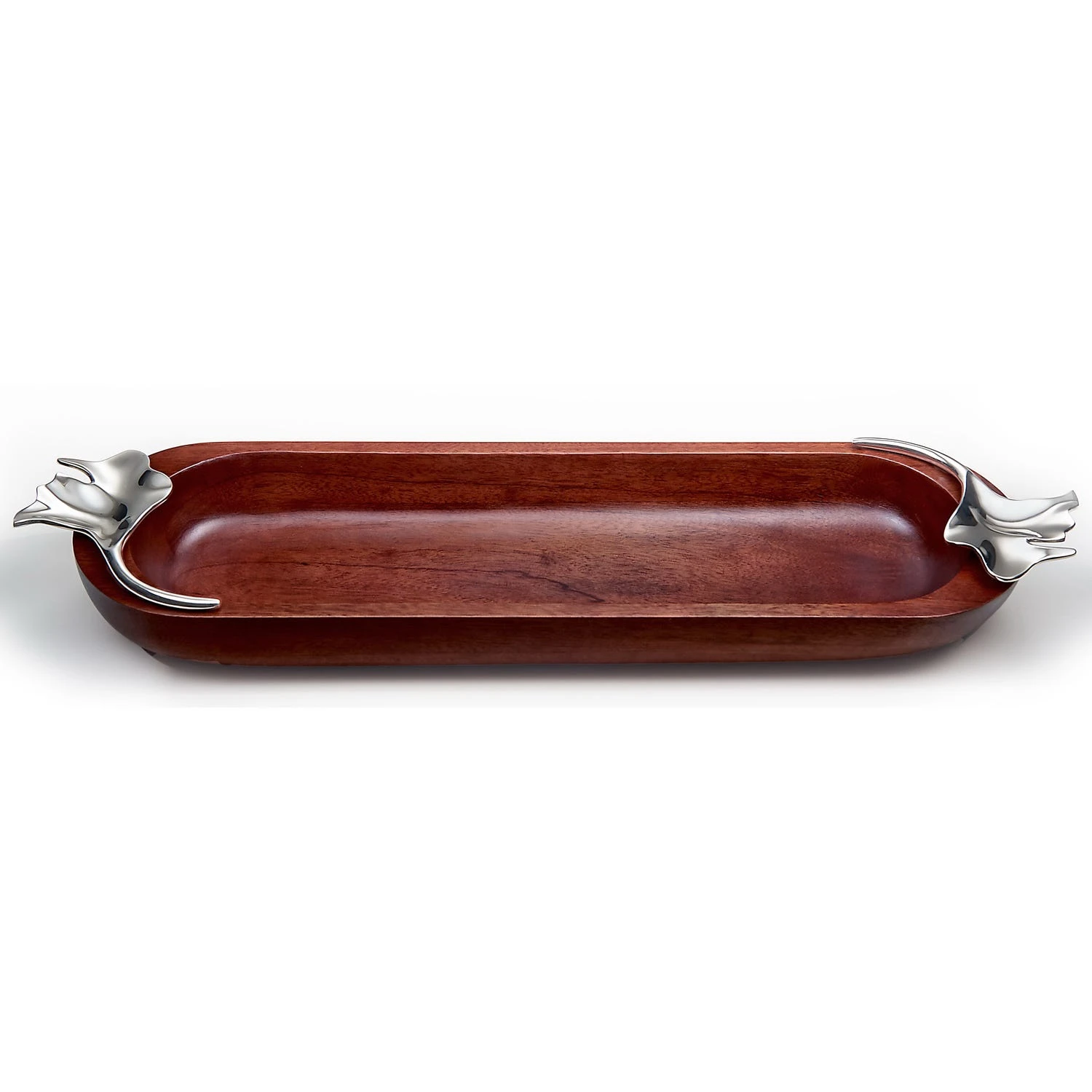 Enjoy the beauty of Mary Jurek’s Ginkgo Extra Long Oval Bowl hand-hewn of natural acacia. Ideal for large gatherings, as an oversized centerpiece or a catchall- you will find numerous ways to love it! Handcrafted with organic metal leaves sculpted for easy handling.