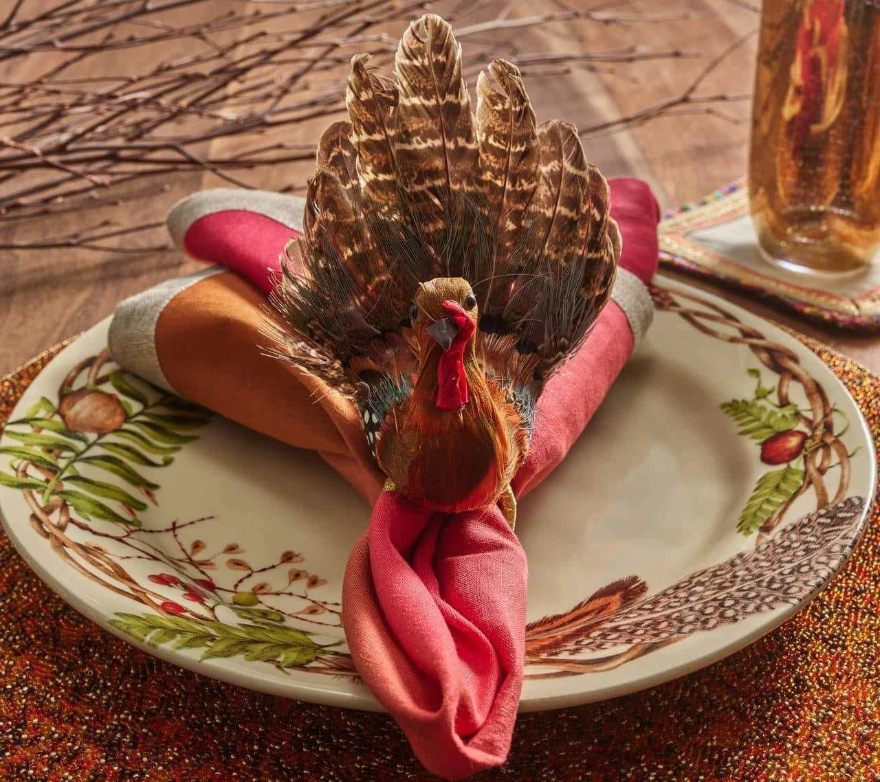 The Gobble Napkin Ring by Kim Seybert is the perfect addition to your holiday soiree.