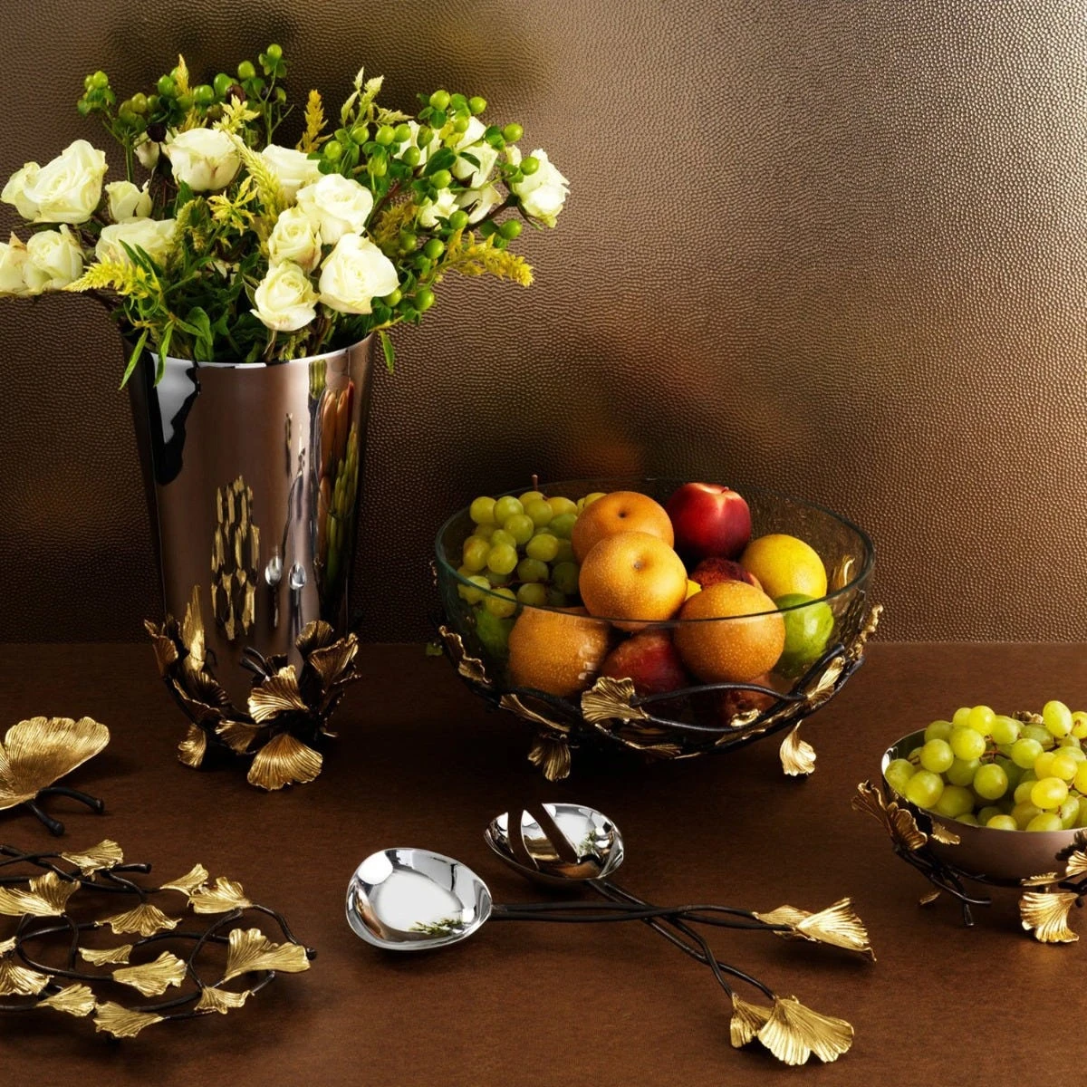 The Golden Ginkgo Collection takes its inspiration from the intricacies of form and texture found in foliage from around the world. By interpreting plant forms in cast metal, Aram presents work which is evocative of a natural environment transformed and redefined.