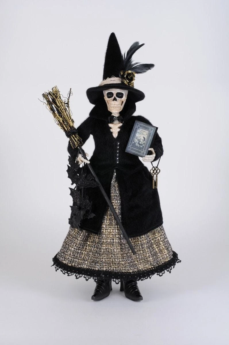 Karen Didion’s Golden Touch Lady Skeleton is a luxurious addition to any Halloween display. The quality is unmatched with this decorative piece’s superior woven attire, and ornate accessories. With her unique appearance, festive embellishments, and classic design; this piece is sure to add character and style to any home.