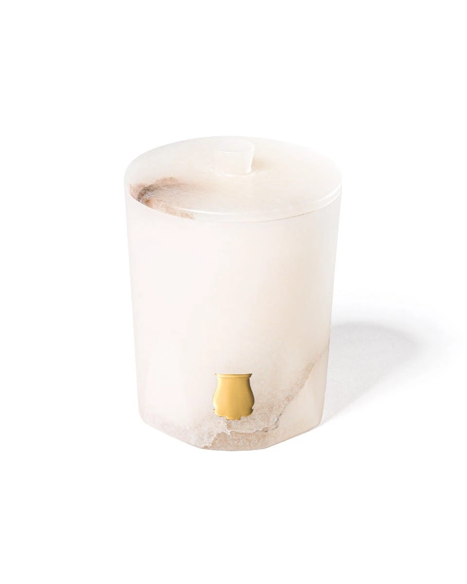 The Hemera Alabaster Candle from Trudon’s home fragrance collection transforms the essence of any room with its captivating aroma & unique luminescent attributes. Exclusive to The Alabasters range, Héméra welcomes the crack of dawn. An ancient Greek goddess, Héméra represents the terrestrial light that clears the night up and announces aurora. Fresh and enveloping, the perfume mirrors the transparency of the alabaster container that lights up, creating a warm halo. The fresh and spicy head notes – coriander and pink peppercorn – are combined with more sensual base notes: teak, sandalwood and cashmere wood give a balmy nature to the perfume, portray Asian landscapes. Héméra calls for a spiritual journey, a luminous escape through unexplored Burman territories, Buddhists trails and Kathmandu, the capital of awakening. Héméra suggests clarity.