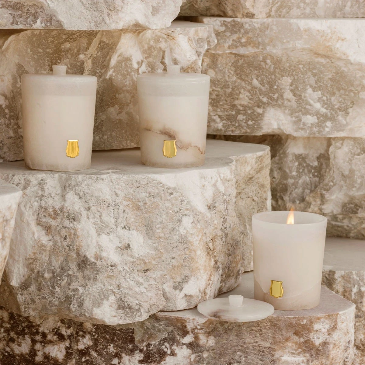 Sculpted in Spain out of a single block of delicate alabaster, the translucent vessel creates a halo of light when the candle is lit, embracing minimal aesthetic with luxurious style. A feast for the senses, this beautiful piece is the perfect addition to any room and is a lovely gift for special occasions & upcoming celebrations.