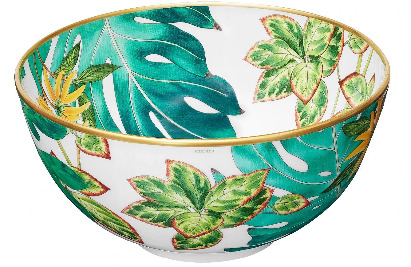 This stunning large bowl features a vibrant foliage pattern both inside and out, including prominent shades of green, yellow and red. The Passifolia Large Bowl is decorated using a chromolithography technique, with a hand-painted 24 karat gold rim on Limoges porcelain. Its larger size makes it ideal to serve vegetables,salad or fruit. Use it alongside other dishes from this stunning collection, or on its own to showcase its beauty.