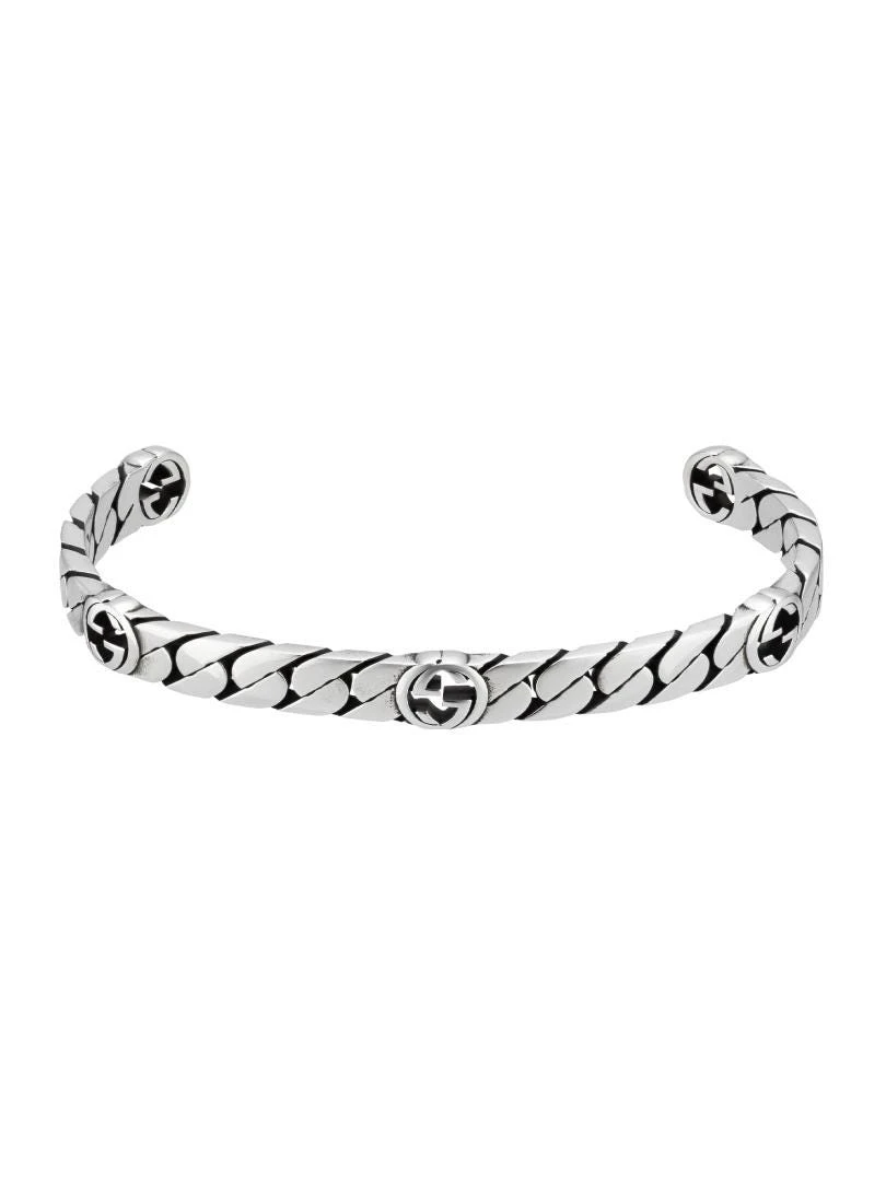 A symbol from the House archives, the Gucci Interlocking G Cuff Bracelet evolves each season—animating new styles in unexpected ways. Here, the versatile symbol appears as a pattern atop of this silver bracelet. Add this beautiful piece to your jewelry collection, or give it as a gift to celebrate a special occasion.