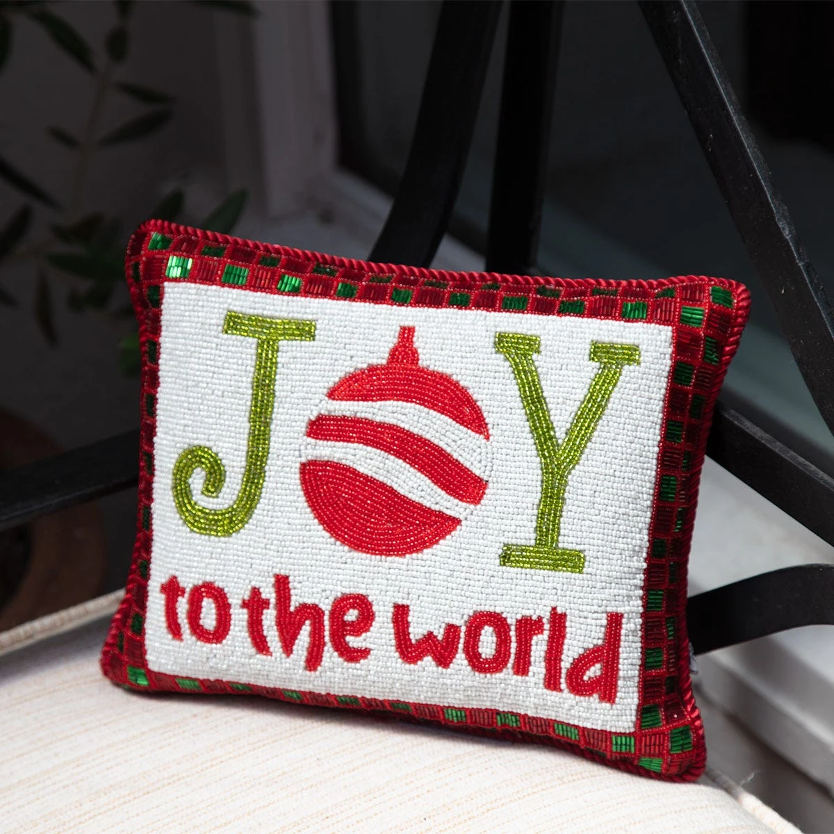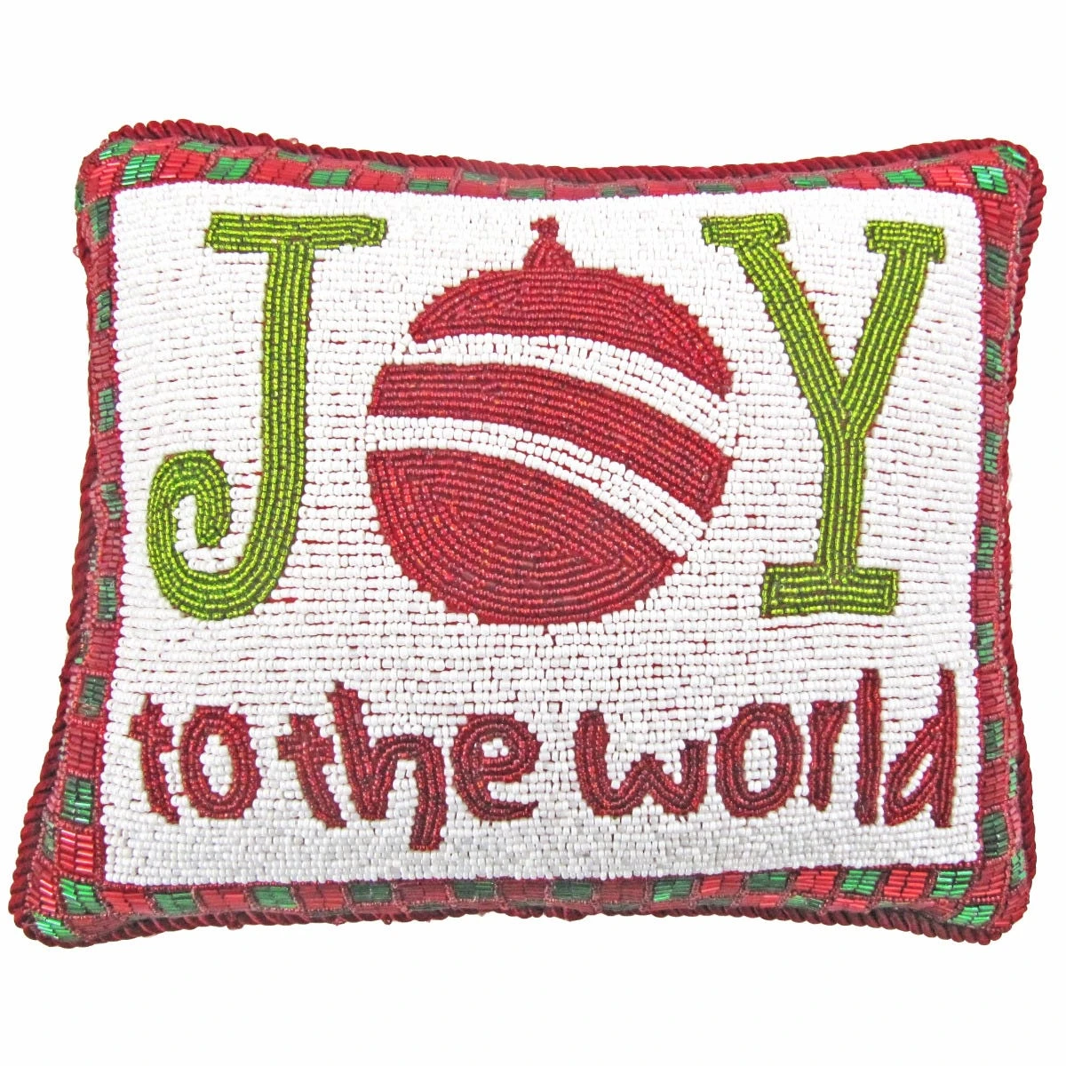 Celebrate the Christmas season with this Joy to the World Beaded Pillow by Sudha Pennathur – a beautifully festive addition to your collection of holiday decorations this season!