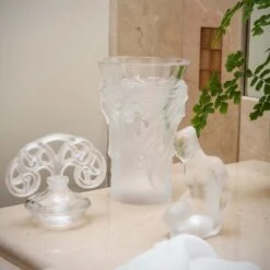 With the Anemone collection, Lalique gives a fresh insight into this creation transfigured to vases available in several sizes and colors, bowls, perfume bottles, and votives. Fashioned in satin-finished and re-polished crystal, emblematic of LALIQUE, the flowers are juxtaposed in a graphics play on repetition, capturing the ephemeral beauty of flowers.