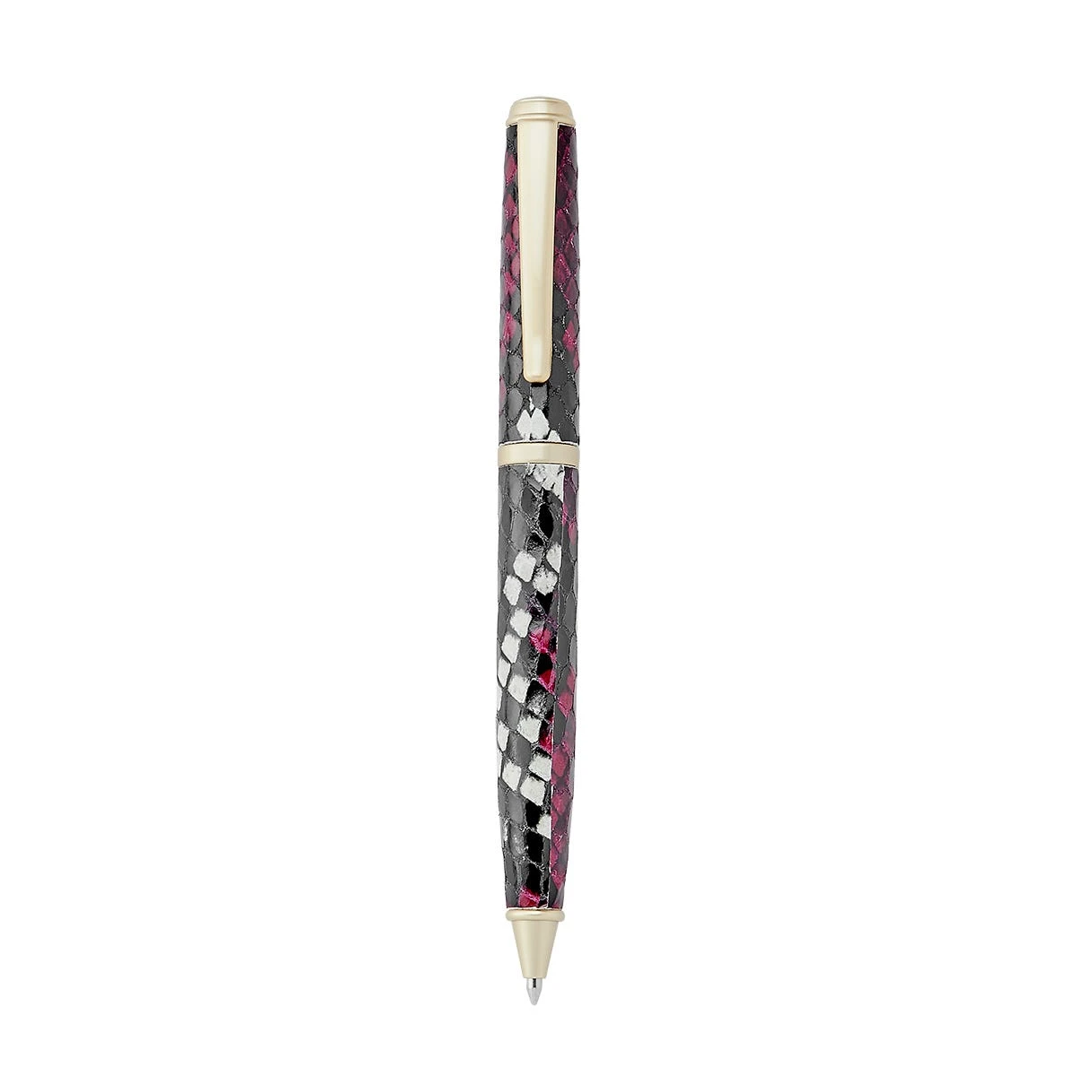 This elegant Leather Wrapped Ballpoint Pen by Graphic Image makes a wonderful gift for your favorite writer. Full wrapped in pink, black & white python embossed leather with gold accents, it add a stylish touch to everyday moments.