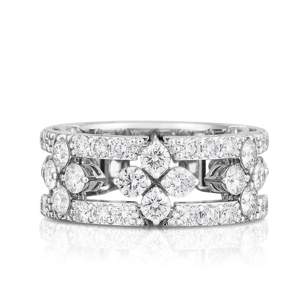 The Love in Verona 18K White Gold Diamond Ring by Roberto Coin makes a beautiful accessory for any jewelry collection. Featuring a smooth yellow gold band with diamond accents in a striking floral pattern, this ring is simultaneously delicate and bold.