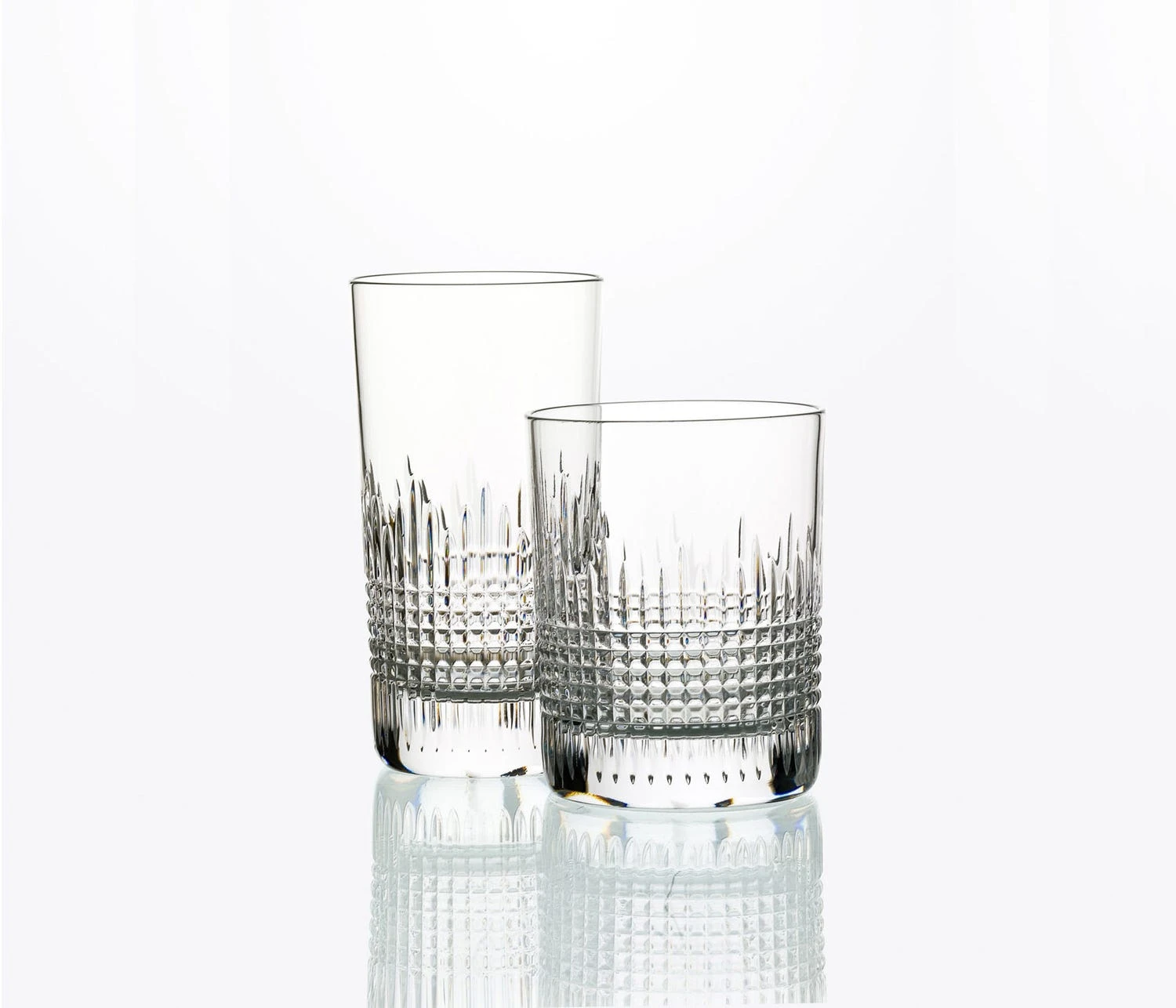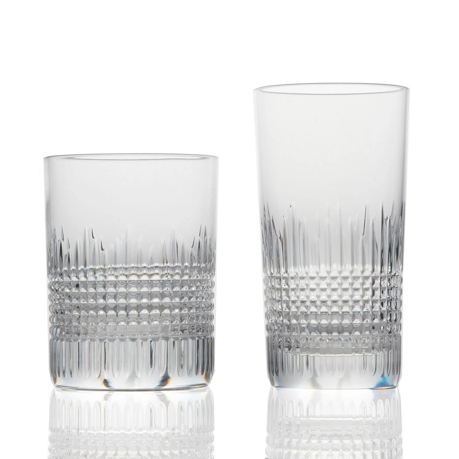 The Nancy barware collection is characterized by its delicate crosshatching of lines etched into the base of the Baccarat clear crystal glass.