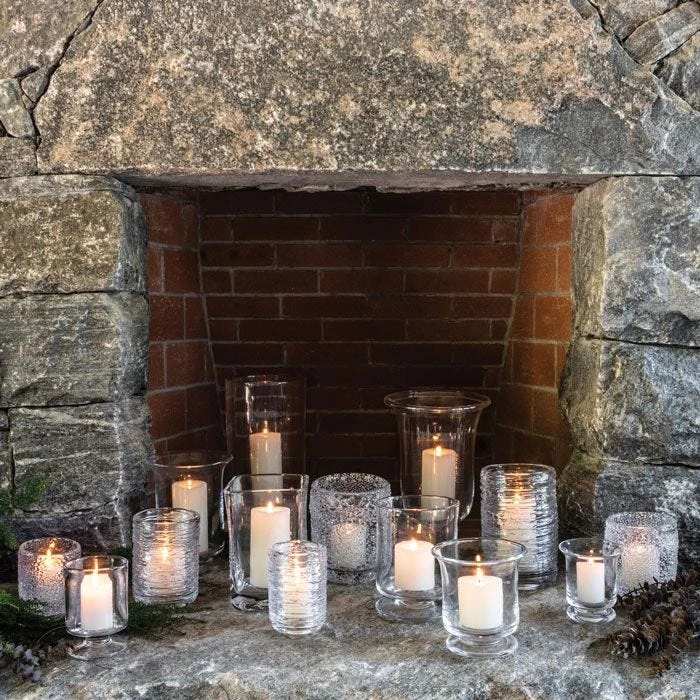A hearty gather of glass goes into the Nantucket Hurricane, its generously scaled walls radiating with brilliance. Weighty yet still somehow ethereal this hurricane is part of Simon Pearce’s iconic Nantucket line. It’s perfect when glowing with a tall pillar candle for a dining table’s centerpiece. Or imagine it as a dramatic art object vessel, layered with colorful collectibles, or striking a rustic tableau filled with weathered branches.