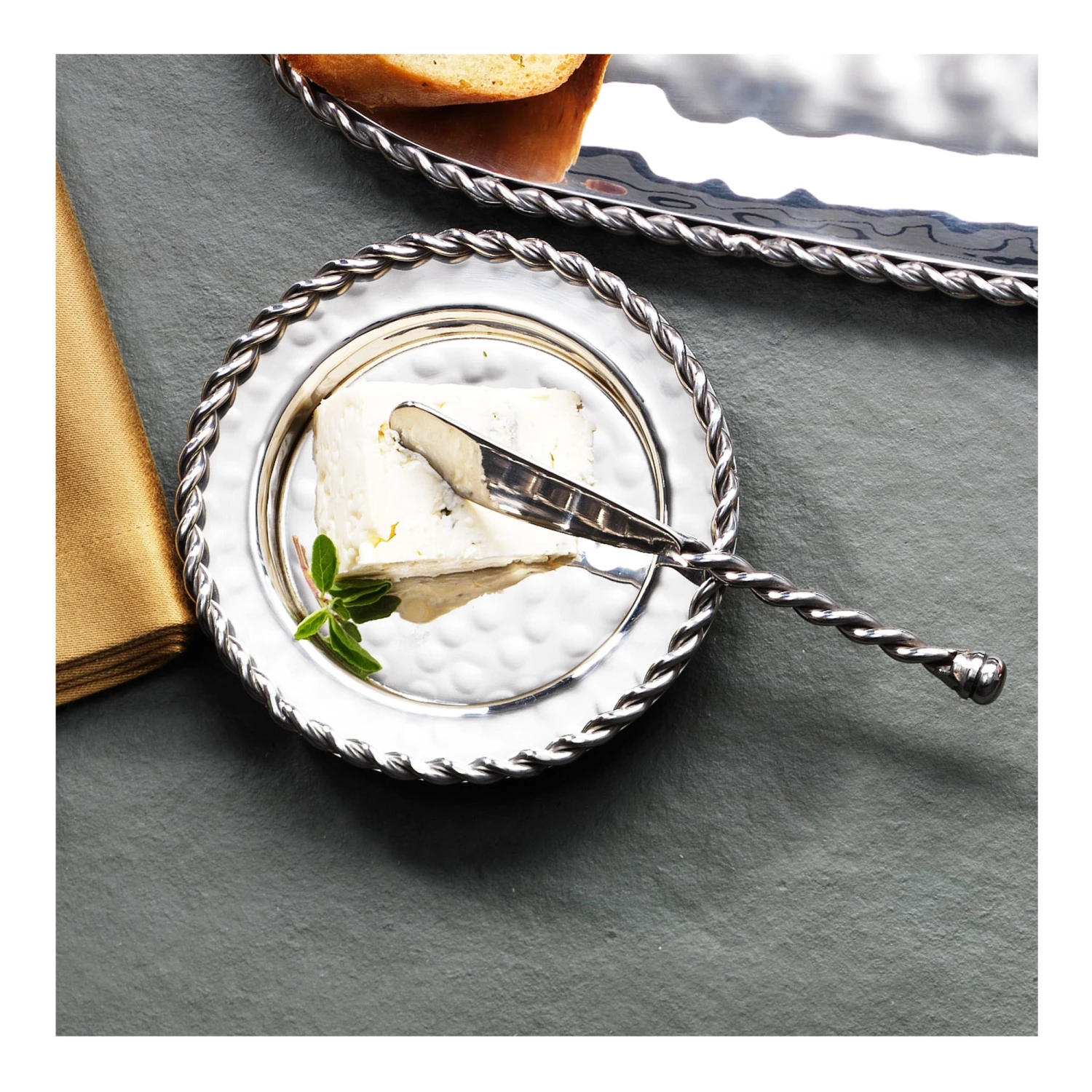 The Paloma Stainless Wine Bottle Coaster from designer Mary Jurek features a delicately hammered finish accented by a rim created by a stylish braided wire. Crafted in 18/8 stainless steel, this contemporary wine bottle coaster is dishwasher safe and makes an attractive addition to any cocktail hour.