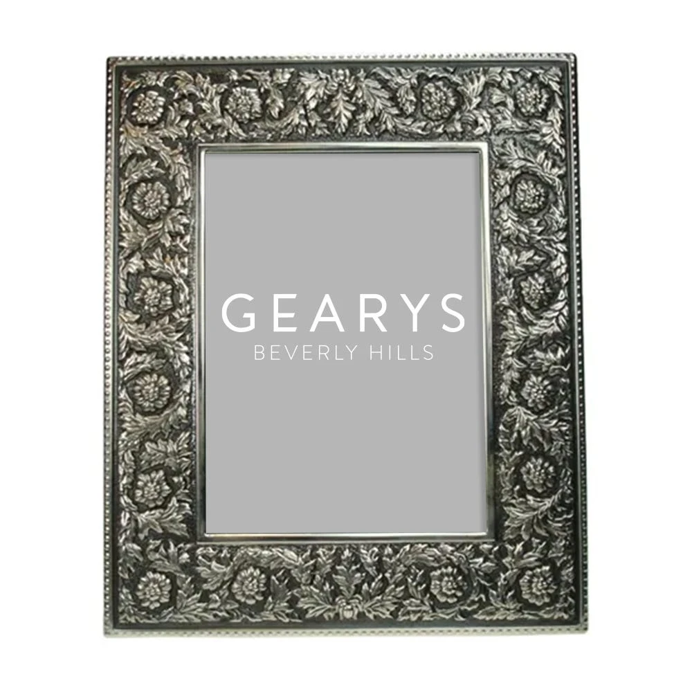Famed for jewelry and silver since the mid-18th century, Buccellati still produces in small workshops with skilled artisans considered the best in the world. The Renaissance frame has a two-way easels, beveled glass and a leather back.