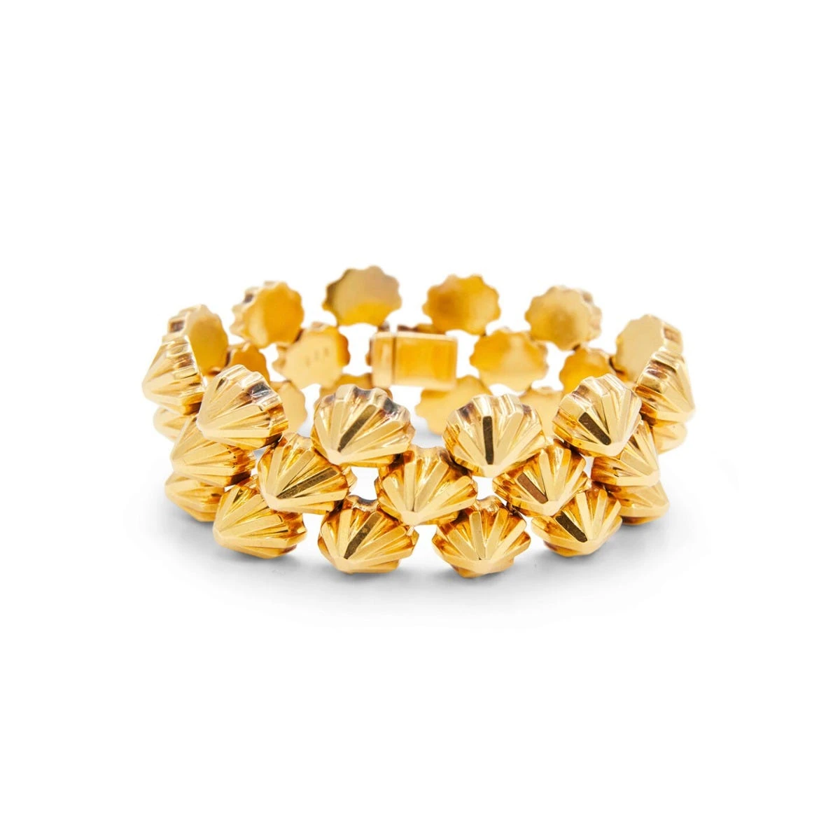 This beautiful Retro Stylized Shell Bracelet from Fred Leighton is a perfect addition for your jewelry collection, and it also makes a wonderful gift to celebrate a special occasion. Links of stylized shell motifs are formed in 18K rose gold to create an elegant & unforgettable jewelry piece.