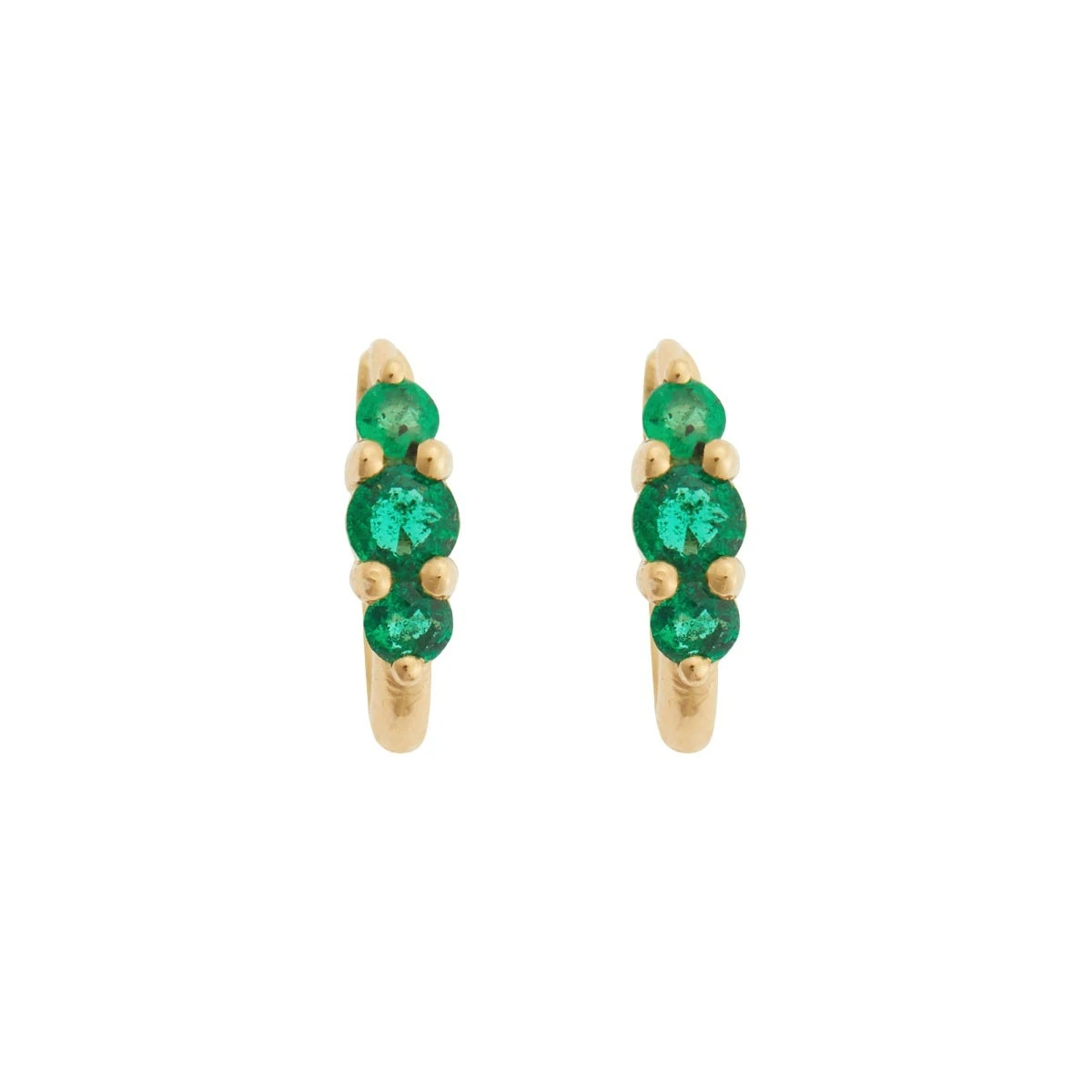 These Emerald Rivulet Small Oval Hoops by Ileana Makri are handcrafted from 14k yellow gold and set with bright emeralds. A beautiful set that accents any outfit, these fashionable earrings are the perfect addition to your jewelry collection or to give as a gift in celebration of a special occasion.