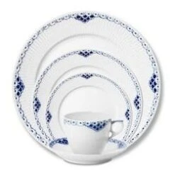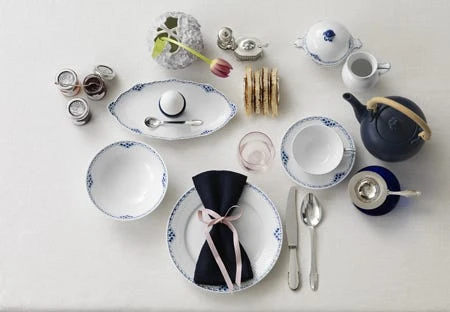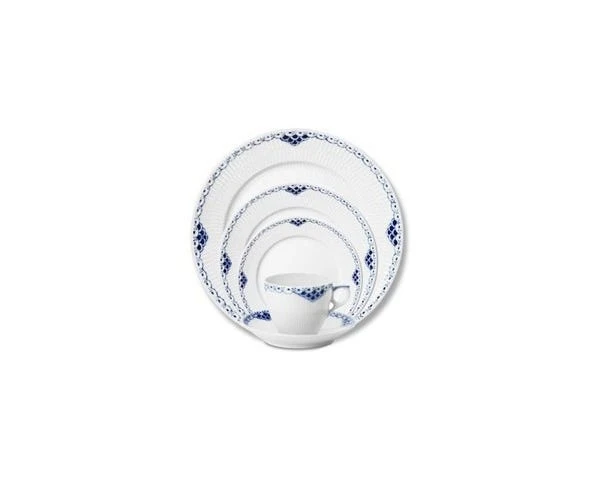 The Royal Copenhagen Princess dinner service became a reality out of a desire to carry on the fine old tradition of hand-decoration, but in a contemporary way. The blue border on the Princess collection made in 1978 resembles a Princess’ tiara.