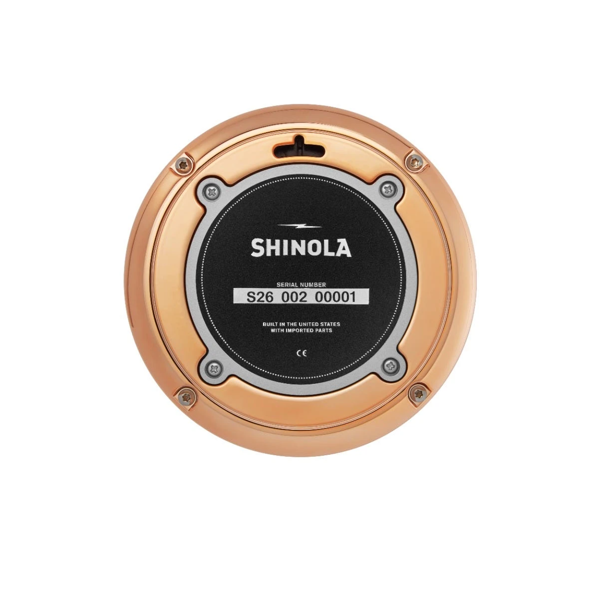 Assembled in our Detroit watch factory, this desk clock is built with a durable copper-toned casing and fastened with a caseback plate that displays an individualized serial number.