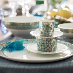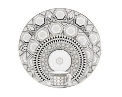 For Haviland Soufflé d’Or Limoges porcelain collection designer Olivia Decaris took her inspiration from a supernova – a phenomenon that occurs when a massive star explodes at the end of its natural life and illuminates the entire Milky Way. This iridescent grey and matt gold constellation will enchant your table decorations and homes with dreams, elegance and finesse.