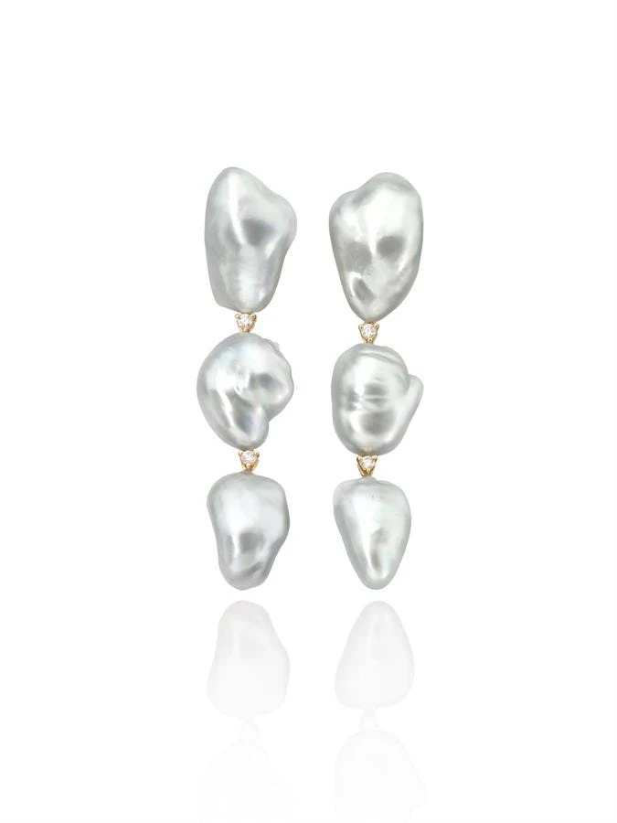 The South Sea Baroque Pearl & Diamond Line Earrings by Assael are beautifully crafted with the highest quality, creating jewelry that is the epitome of elegance and refined taste. The earrings are fashioned in 18K rose gold and feature 6 Keshi South Sea cultured pearls with 4 diamond connections and clip backs. The perfect accessory for special occasions, these earrings are the perfect addition to your jewelry collection or when given as a gift to someone special in your life.