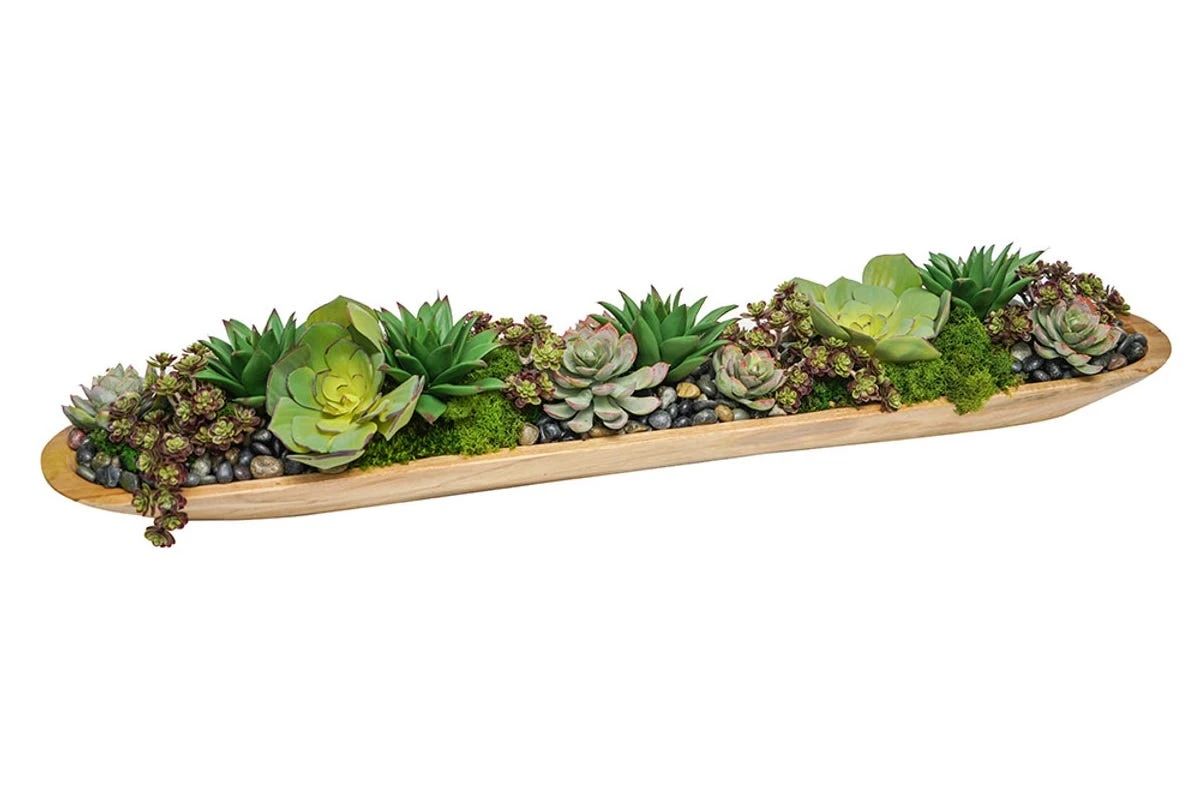 A great alternative to fresh flowers, the Succulents in Low Wood Boat arrangement has the look and feel of a real bouquet. It is a great way to brighten up any home or office space, and it is perfect to give as a beautiful gift.