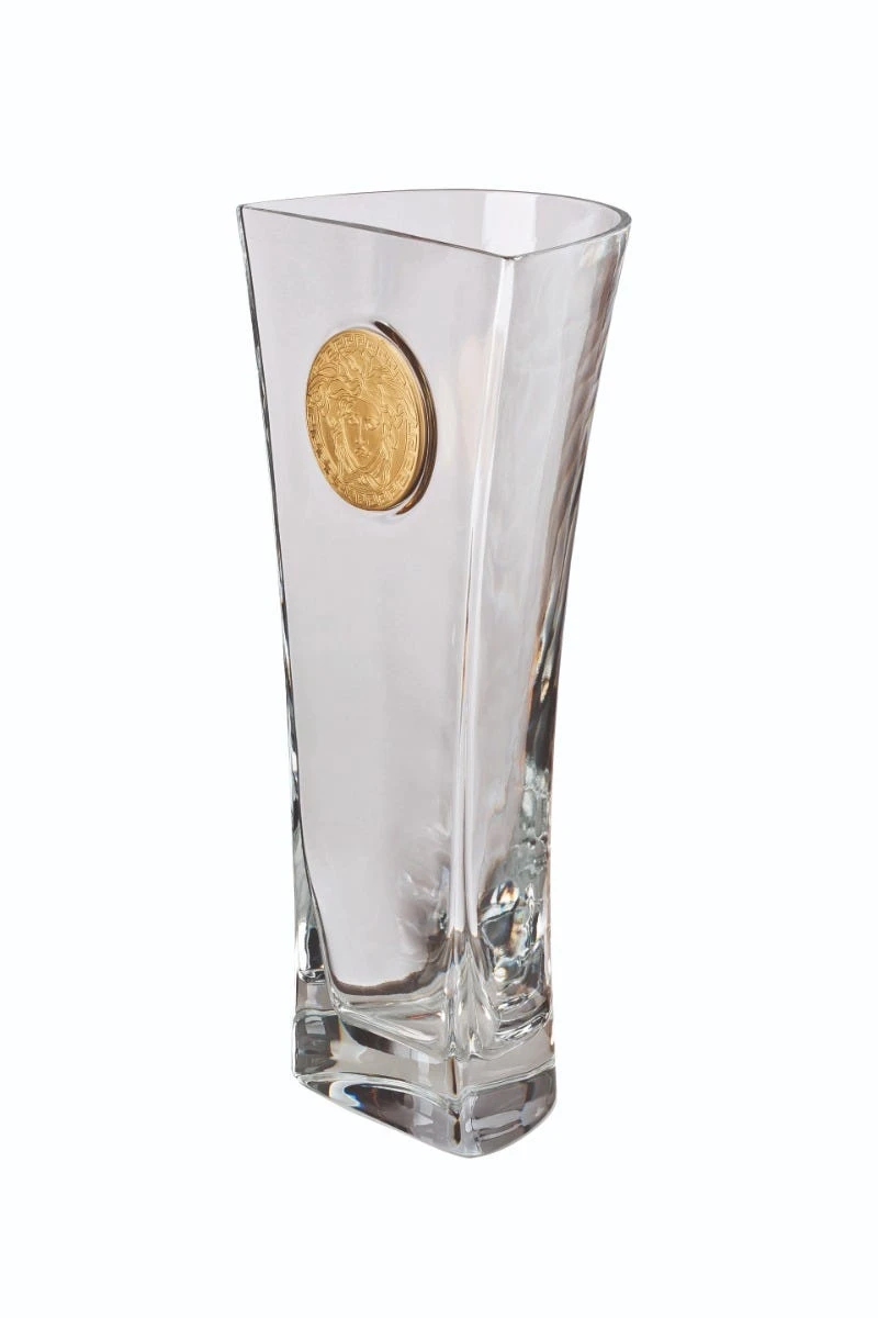 At the center of the Medusa Madness collection is the iconic Versace symbol – the mythical Medusa. The elegant clear vase is embellished with a three-dimensional Medusa depicted in lustrous gold.