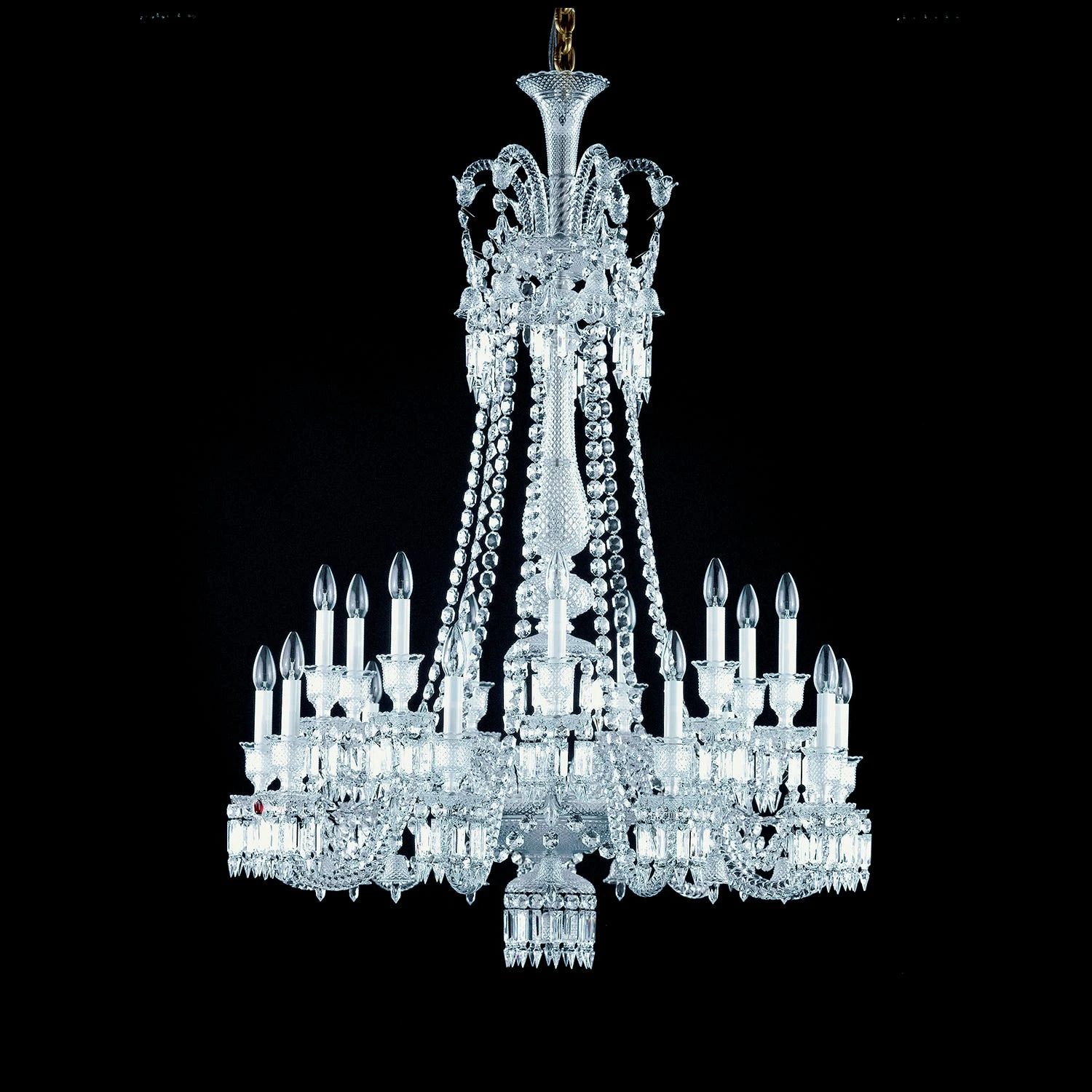 The Zenith 18 Light Chandelier features prisms and sparkling pendants, plus Baccarat’s signature single red octagonal crystal hanging discreetly among the glitter. This luminous piece’s ornate beauty is a true show-stopper, a luxurious addition to your home décor.